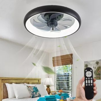 Modern Black LED Ceiling Fan with Dimmable Chandelier